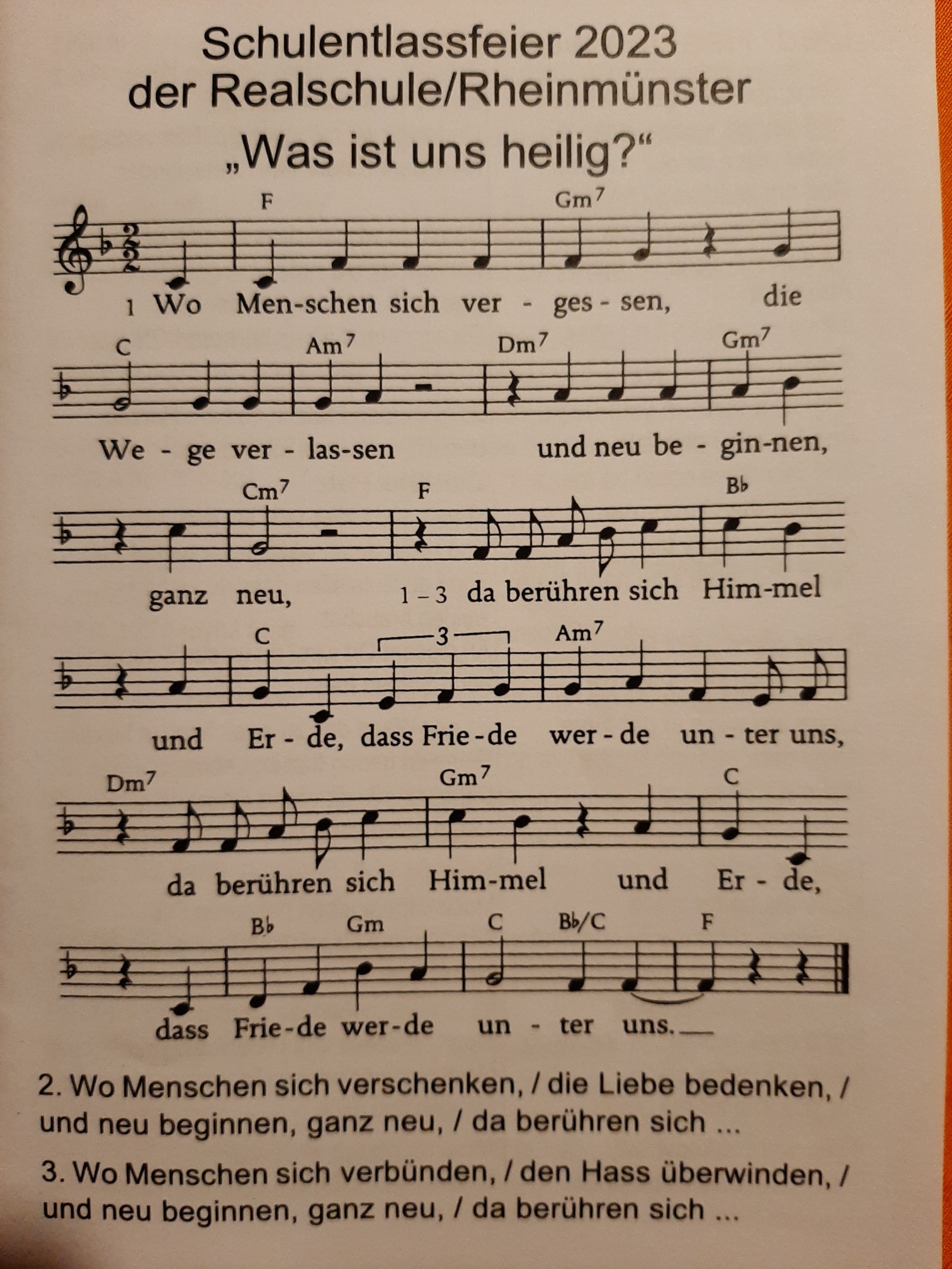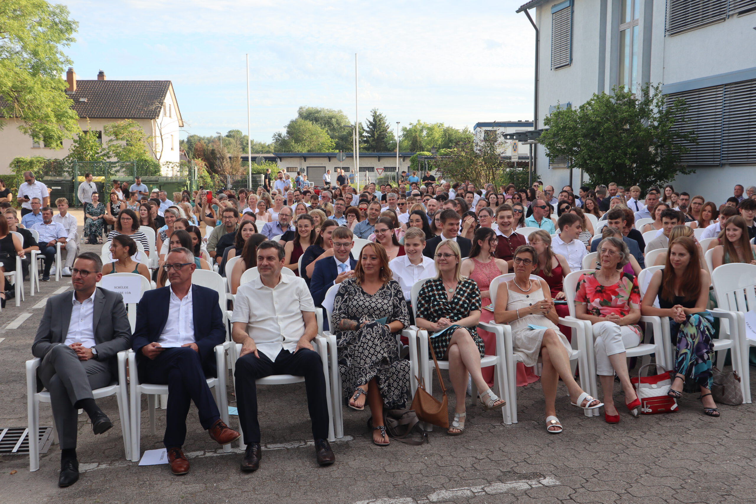 In einen neuen Lebensabschnitt verabschiedete die Realschule Rheinmünster am Freitagabend die diesjährigen Entlass-Schüler der drei zehnten Klassen. 62 Jugendliche haben erfolgreich ihre Mittlere Reife bestanden und wurden in einem zweiteiligen Festakt, bestehend aus einem ökumenischen Gottesdienst unter dem Motto „Was uns heilig ist“ und der traditionell „Open-Air“ veranstalteten Abschlussfeier im Schulhof, gefeiert.
