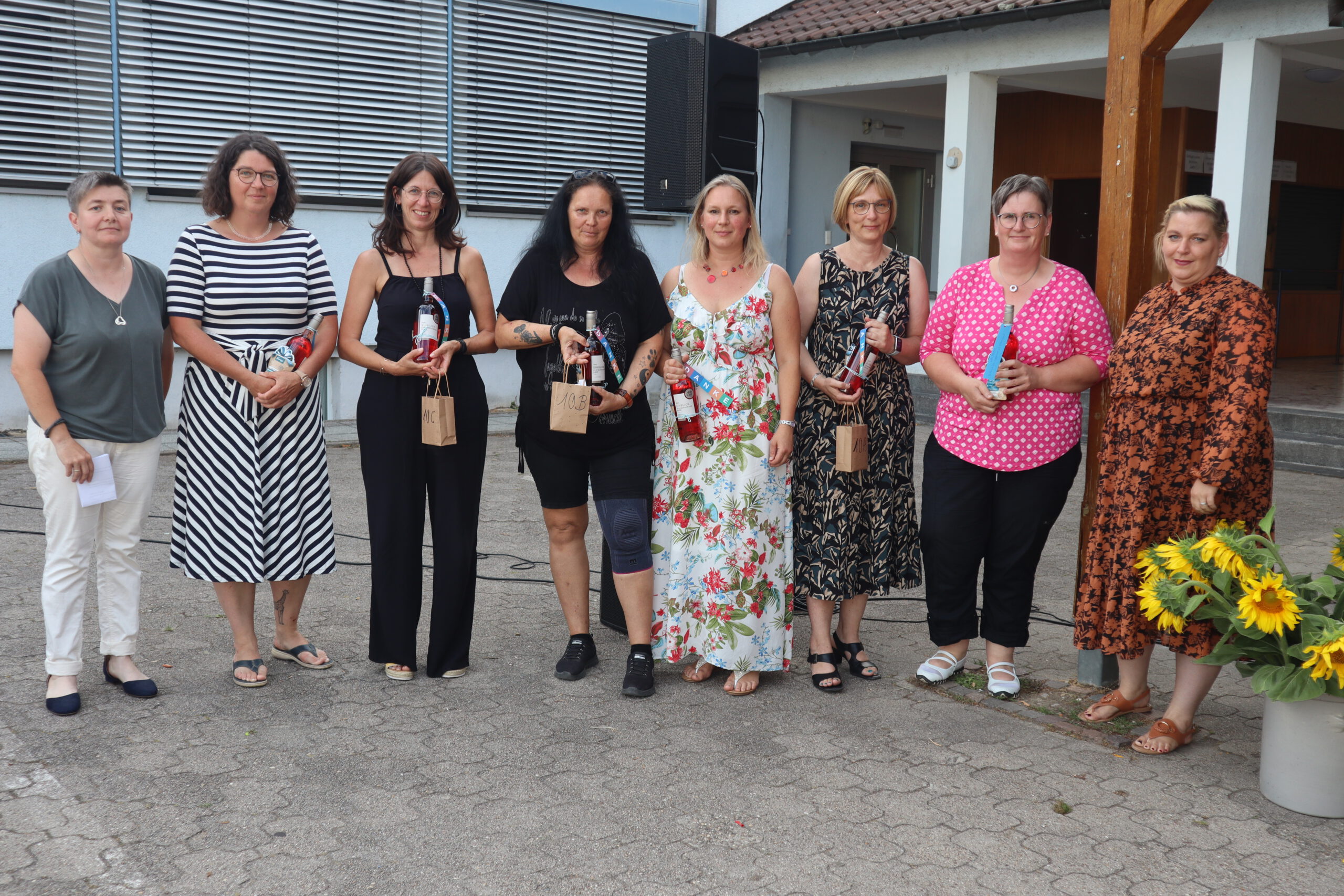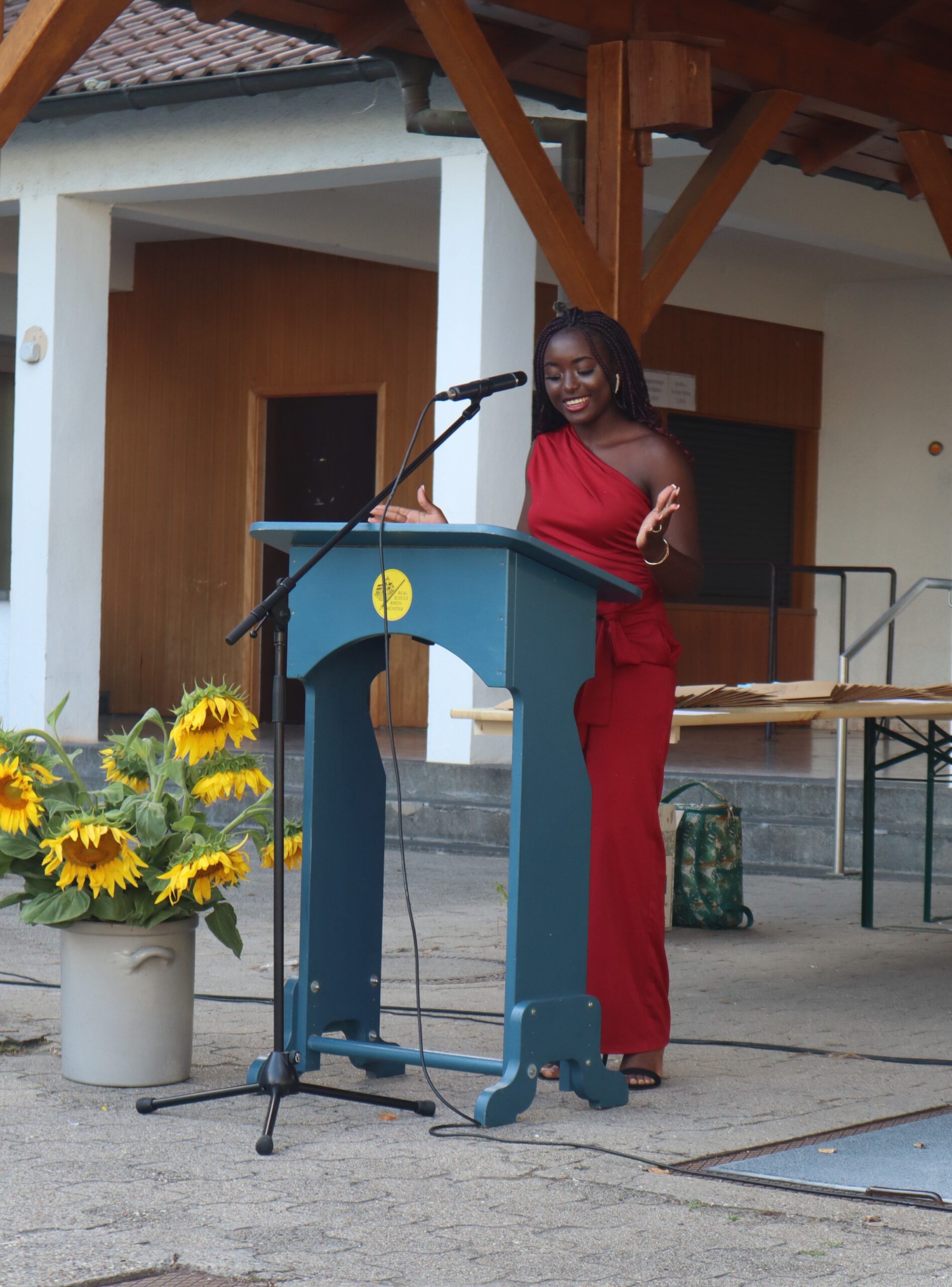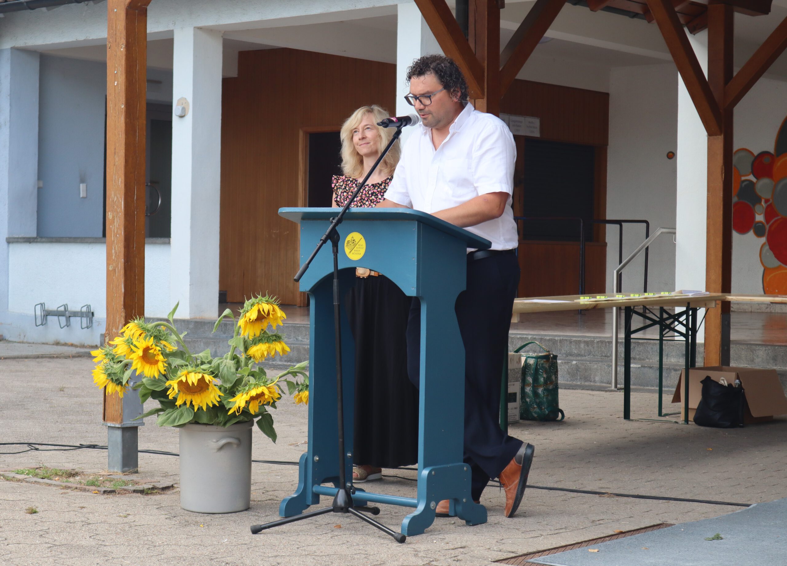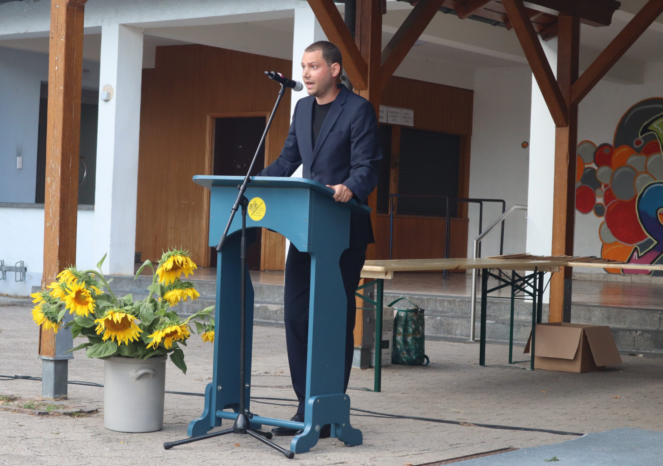 Nach den mit Anekdoten und Erinnerungen gespickten Ansprachen der drei Klassenlehrer Ralf Heiß (10a), Irina Flamm-Vorbach (10b) und Manuel Hauth (10c), erhielten die scheidenden Zehntklässler schließlich die lange ersehnten Abschlusszeugnisse. Die beiden Verbindungslehrer Michaela Bohn-Vogel und Thomas Wertal verabschiedeten Ivona Antonie, die seit diesem Schuljahr Schülersprecherin der Realschule war und ihr Amt mit viel Herzblut und Leidenschaft ausgeführt hat. Außerdem bedankten sie sich bei den Klassensprechern der Abschlussklassen für ihr Engagement für ihre Mitschüler, bevor auch Elternbeiratsvorsitzende Sandra Kautz ans Rednerpult schritt und die Mittlere-Reife-Geprüften zu ihren Schulabschlüssen beglückwünschte und den Elternvertretern der drei zehnten Klassen für ihren Einsatz dankte. Mit Reggae-Rhythmen und dem von Musiklehrer Andreas Nock selbst komponierten Song „Bessere Welt“ wurde der offizielle Teil der Abschlussfeier beschlossen und zum gemütlichen Beisammensein bei Fingerfood und Getränken übergeleitet – gefeiert wurde an diesem lauen Sommerabend noch lang.