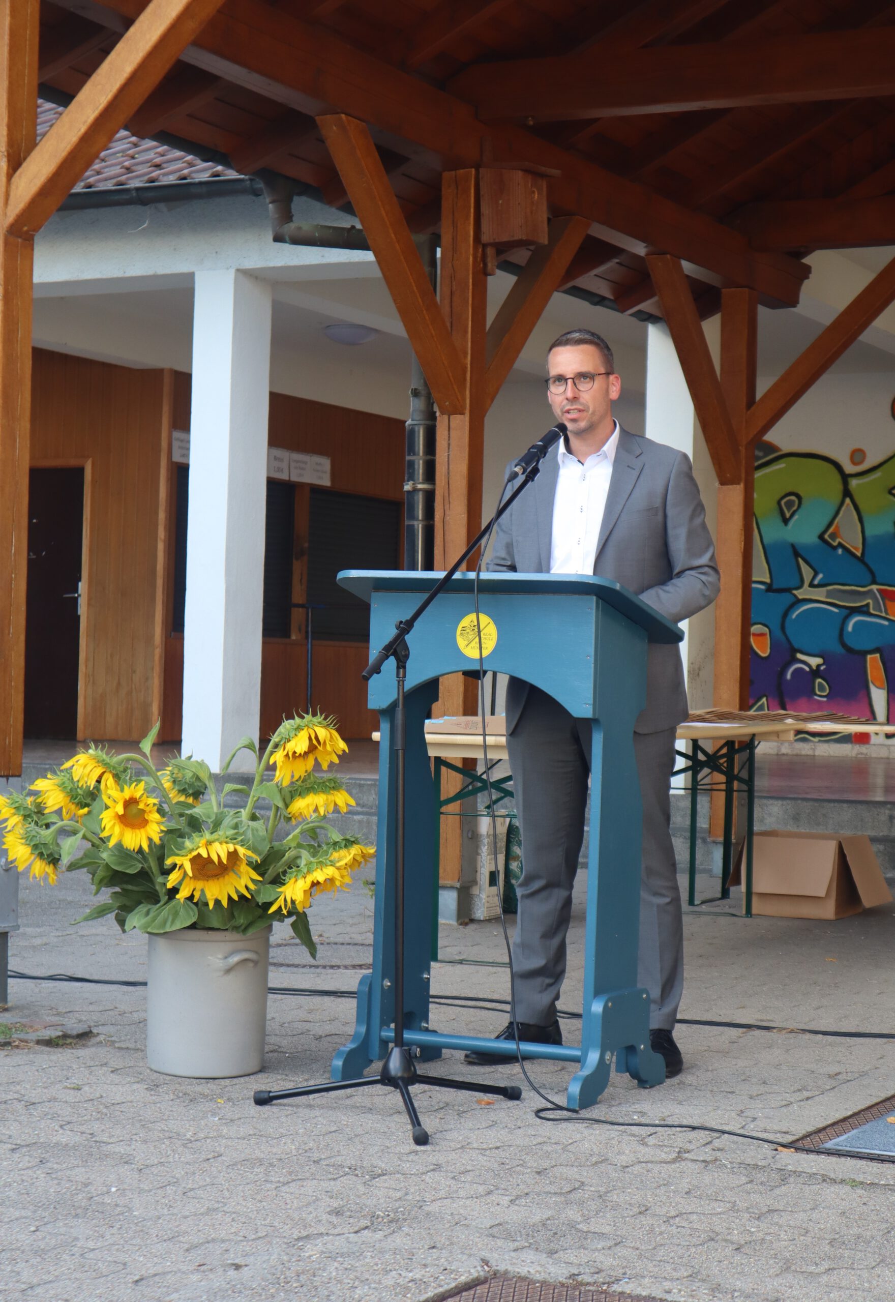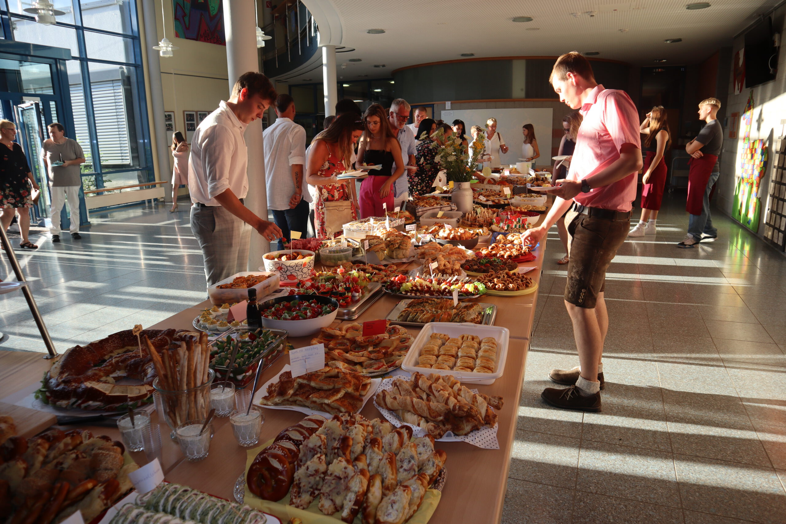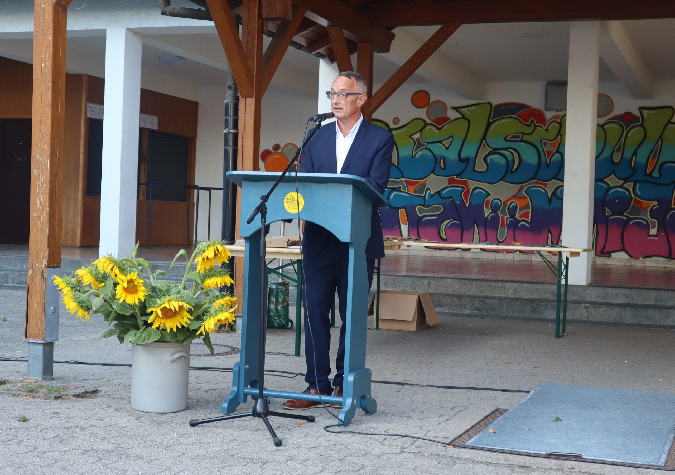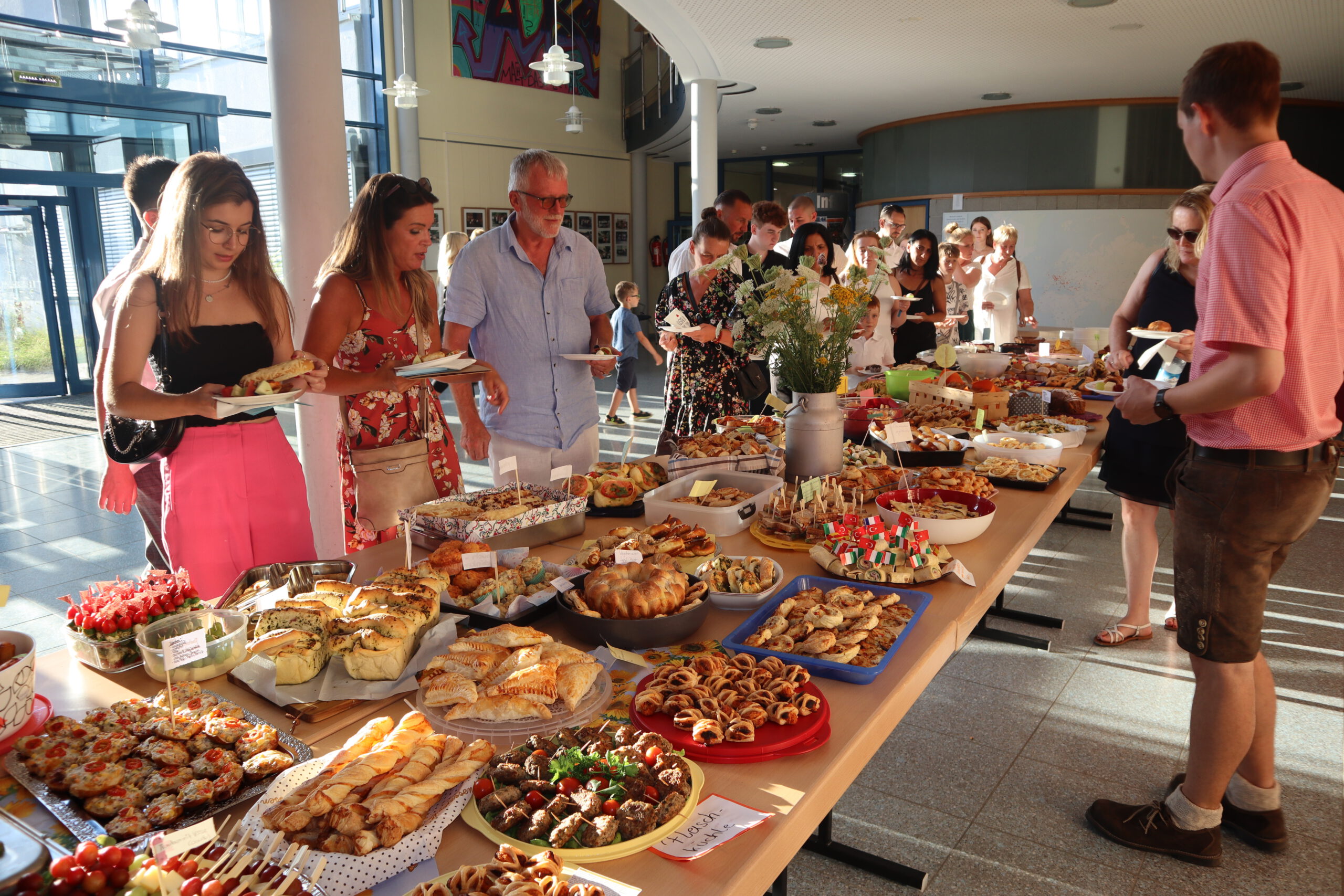 Nach den mit Anekdoten und Erinnerungen gespickten Ansprachen der drei Klassenlehrer Ralf Heiß (10a), Irina Flamm-Vorbach (10b) und Manuel Hauth (10c), erhielten die scheidenden Zehntklässler schließlich die lange ersehnten Abschlusszeugnisse. Die beiden Verbindungslehrer Michaela Bohn-Vogel und Thomas Wertal verabschiedeten Ivona Antonie, die seit diesem Schuljahr Schülersprecherin der Realschule war und ihr Amt mit viel Herzblut und Leidenschaft ausgeführt hat. Außerdem bedankten sie sich bei den Klassensprechern der Abschlussklassen für ihr Engagement für ihre Mitschüler, bevor auch Elternbeiratsvorsitzende Sandra Kautz ans Rednerpult schritt und die Mittlere-Reife-Geprüften zu ihren Schulabschlüssen beglückwünschte und den Elternvertretern der drei zehnten Klassen für ihren Einsatz dankte. Mit Reggae-Rhythmen und dem von Musiklehrer Andreas Nock selbst komponierten Song „Bessere Welt“ wurde der offizielle Teil der Abschlussfeier beschlossen und zum gemütlichen Beisammensein bei Fingerfood und Getränken übergeleitet – gefeiert wurde an diesem lauen Sommerabend noch lang.