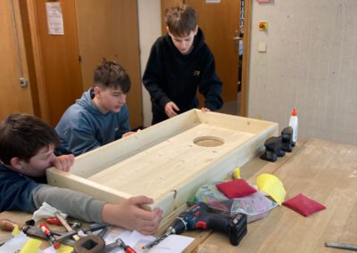 Die Projekte deckten ein breites Spektrum ab: Von kreativ-schöpferischen Projekten wie der „Gießwerkstatt“ oder dem Projekt „Hörspielhelden“ reichte das Angebot über musikalische Angebote wie „gemeinsam Gitarre spielen“ bis hin zu Exkursionen und Forschertätigkeiten in der Natur, beispielsweise beim Projekt „Gewässerforschung mit dem Ökomobil“ oder dem Projekt „Der Natur auf der Spur“. Letzteres lockte mit Exkursionen zum Naturparkzentrum Ruhestein und in den Karlsruher Zoo. Auch Kulinarik-Fans kamen nicht zu kurz: Beim Projekt „Vom Korn zum Brot“ gab es neben Laugenbrötchen und Baguettes auch wahrhaftige Foccacia-Kunst zu erlernen. Den Gemeinschaftssinn sprachen insbesondere die Projekte „Flohmarkt für unsere Partnerschule“, „L.A.M.A und andere Mitmach-Spiele“ und „Wir erstellen Cornhole-Games für den Pausenhof“ an. Sportfreunde kamen beim Kletterprojekt „Knoten und hoch hinaus“ voll auf ihre Kosten. Diese Projektgruppe besuchte an einem Tag die Kletterhalle „The Rock“ in Karlsruhe und übte sich im Klettern. Auch die Projekte „Sportspiele rund um den Ball“ und „Trendsportarten“ ließen die Herzen der Sportbegeisterten höherschlagen.