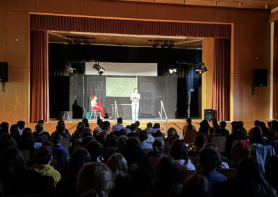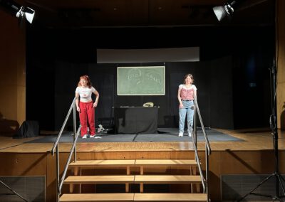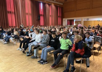 Im Anschluss an das einstündige Theaterstück fand eine von den beiden Schauspielerinnen geleitete Diskussions- und Fragerunde statt und die Schüler hatten die Gelegenheit, ihre Eindrücke zu schildern und Rückfragen zum Gezeigten zu stellen. Es ging darum, die Jugendlichen für schwierige Situationen im Bereich Mobbing zu sensibilisieren, aber auch Handlungsmöglichkeiten zu eröffnen – und zwar sowohl für die Opfer als auch für die Täter und deren Mitläufer.